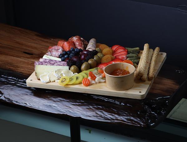 Comes with selection of meats, cheeses, toppings, and spreads.