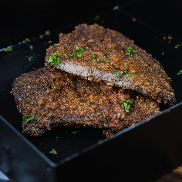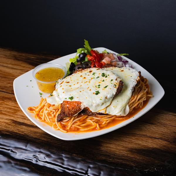 Parmigiano crusted beef cutlet, mozzarella, and marinara sauce. Finished with grated parmigiano.
