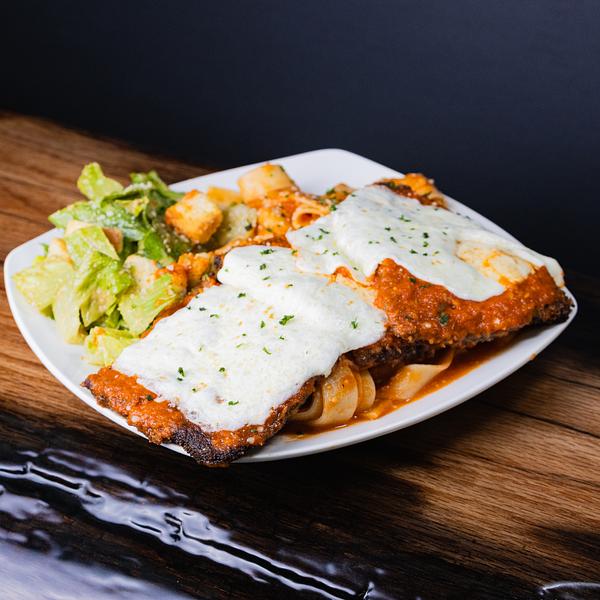 House made breaded eggplant with marinara, mozzarella, and finished with grated parmigiano.