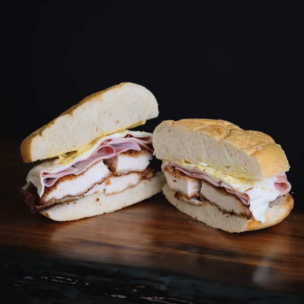 Crispy chicken cutlet, sliced ham, mozzarella, and Dijon mustard. Add bacon for an extra crunch.