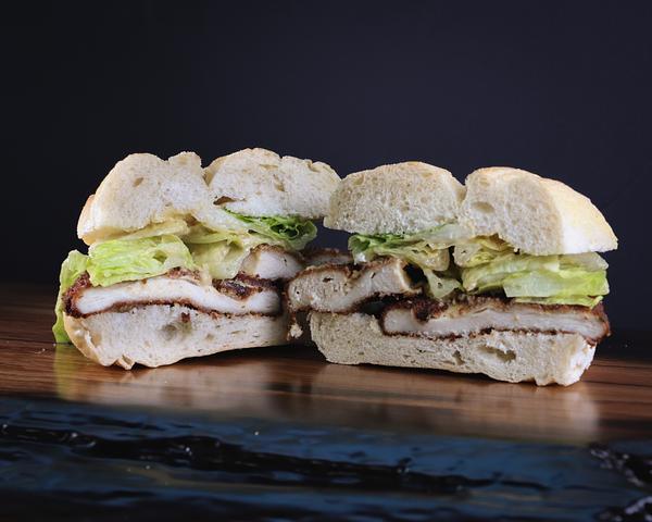 Chicken Cutlet, lettuce, caesar dressing, and grated parmigiano.